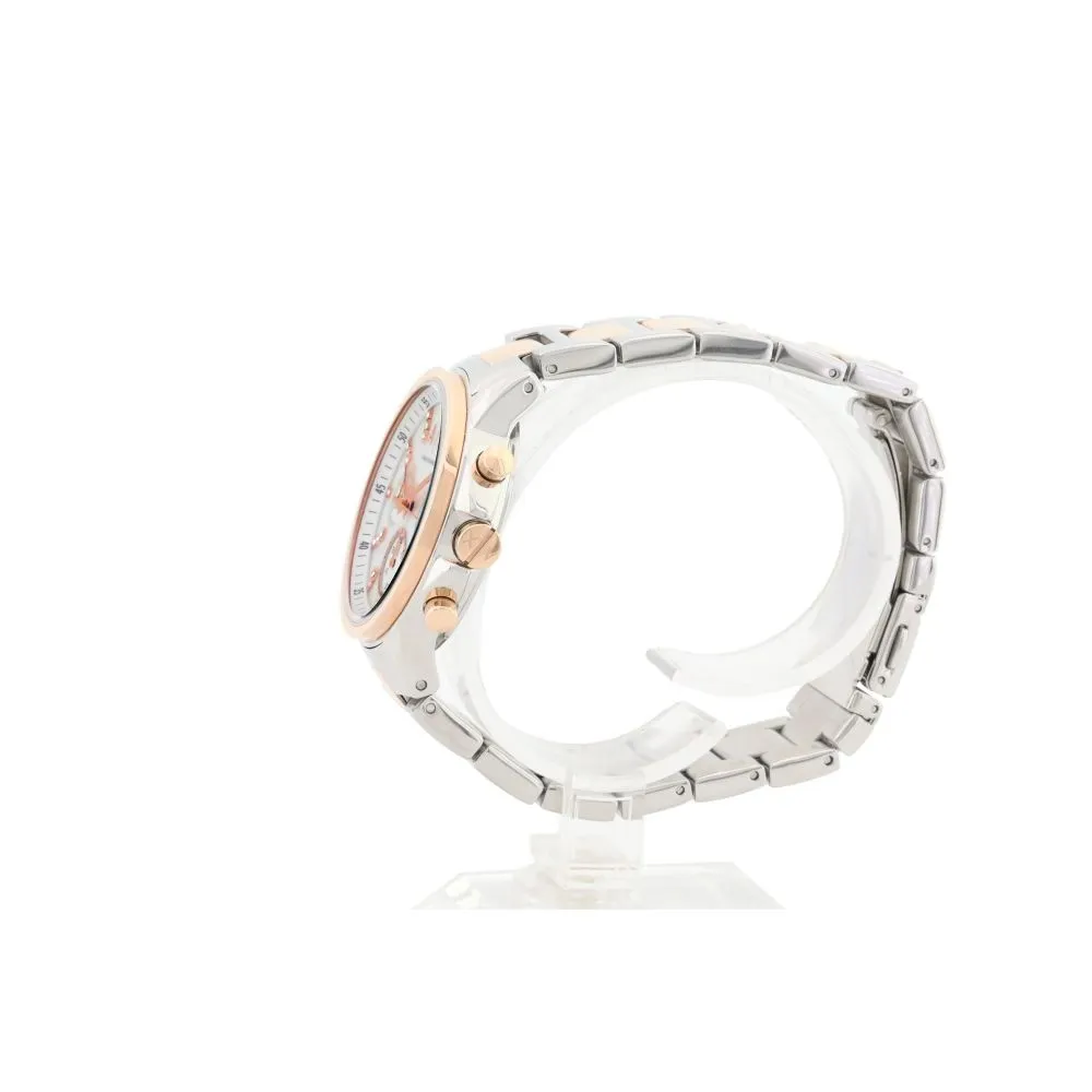 Перламутровый циферблат с метками в виде штрихов и точек, инкрустированных кристаллами